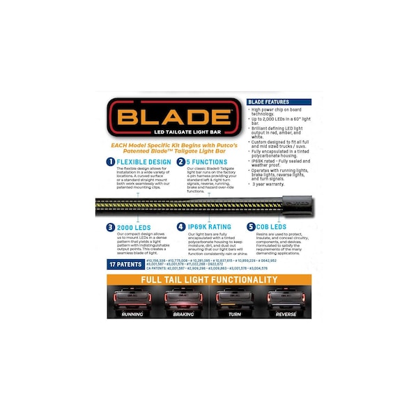 60 Inch Flexible Light Bar; Red Turn Signal/ White Reverse/ Red Brake/ Red Running Operation; High Power Chip On Board LED; Tinted Polycarbonate Housing; With Quick Connect Wiring Harness