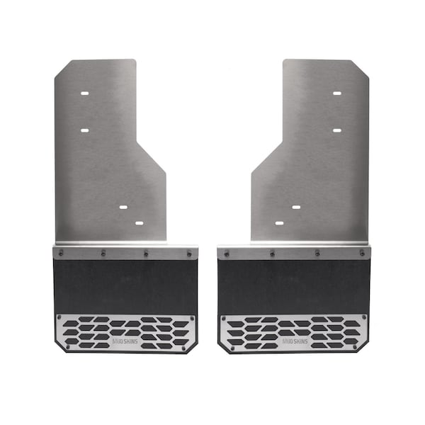 Mud Flaps, Direct Fit; Set Of 2; Flat; Without Logo; Brushed; Stainless Steel; Bolt On Mount; With
