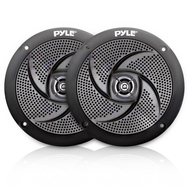 Features: - Includes (2) Component Speakers - Waterproof & Weather-Resistant Design - Rugged Marine Grade Construction - Low-Profile Slim Style Speaker Housing - 2-Way Full Range Stereo Sound Reproduction - Molded ABS Machined Basket and Grill - Universal Standard OEM Replacement Size - For Boat, Marine Watercraft & Off-Road Vehicles What's in the Box: - (2) Marine Speakers - (2) Speaker Wires, 9.8’ ft. Installation / Mounting: - Total Speaker Diameter: 7.3'' - inches - Cut-Out Diameter: 5.3'' - inches - Total Speaker Depth: 1.6'' - inches - Mounting Depth: 0.92'' - inches Technical Specs: - Power Output: 240 Watt MAX (120 Watt RMS) - Speaker Size: 6.5'' -inches - Voice Coil Type: Aluminum - Impedance: 4 Ohm - Magnet: 5.4 Oz - Frequency Response: 60Hz-18khz - Construction Material: Engineered ABS