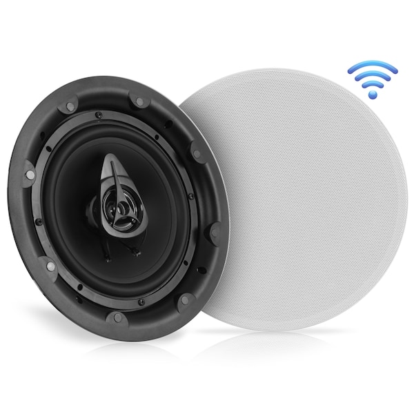 Features: - In-Wall / In-Ceiling Home Speakers - Active + Passive Speaker System - Built-in Bluetooth Wireless Receiver - Universal Flush Mount for Any Flat Surface - Flat & Thin, Slim-Style Removable Speaker Grill - Convenient Magnetic Speaker Grill Quickly Attaches / Detaches - Digital Sound Processing Amplifier - Ability to Connect External Devices - RCA Audio Aux (L/R) Connectors - 2-Way Full Range Stereo Sound Reproduction - 2” High Compliance Polymer Tweeter - Polypropylene Cone with Rubber Edge - Cut-Out Template for Easy Installation - Integrated Clamp-Type Mounting Brackets - Environmentally Friendly ABS Construction - Perfect for Custom Audio Applications - Used for Home, Office & Business What’s in the Box: - (1) 8’’ -inch Active Speaker - (1) 8’’ -inch Passive Speaker - (2) Speaker Connection Wires, 9.8’ ft. - Cut-Out Template - Power Adapter Technical Specs: - Power Output: 360 Watt MAX - Speaker Style: Round / Circle - Frequency Response: 55Hz-22kHz - Impedance: 8 Ohm - Sensitivity: 91 +/- 2 dB @ 1W/1M - Cut-out Diameter: 7.25'' -inches - Active Speaker Mounting Depth: 4.4'' -inches - Passive Speaker Mounting Depth: 3.76” -inches - Power Supply: 110/240V (18V Power Adapter)