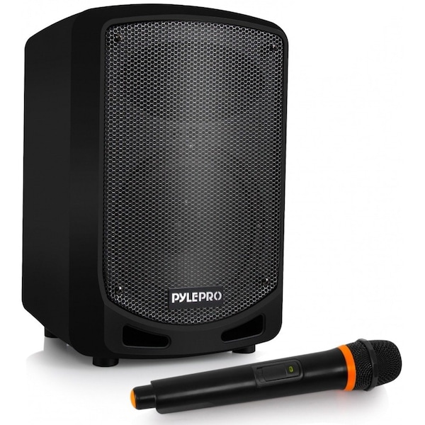 Features: - Compact, Portable & Powerful PA Speaker - High-Powered Audio Karaoke Sound System - Built-in Rechargeable Battery - Bluetooth Wireless Audio Streaming - Digital Audio Recording Mode - Sound System: 6.5'' Subwoofer, 3'' Treble Speaker - Rear Panel Button Control Center - Includes Wireless Microphone - 1/4'' Microphone Input - Aux (3.5mm) Input - Connect & Stream Audio from External Devices - USB Flash + Micro SD Memory Card Readers - MP3 Digital Audio File Playback - Audio Configuration: Echo, Bass and Treble Controls - LCD Digital Display Screen - External 12V Power DC Input Connector - 35mm Speaker Stand Mount - Perfect for Karaoke, Public Events, Crowd Control, etc. Bluetooth Wireless Connectivity: - Built-in Bluetooth for Wireless Music Streaming - Works with All of Your Favorite Devices - (iPhone, Android, Smartphone, iPad, Tablet, Computer, etc.) - Bluetooth Wireless Network Name: ‘PYLE PSBT65A’ - Bluetooth Version: 3.0 - Wireless Range: 33’+ ft. MP3 Audio Recording Ability: - It's Easy: Mode Button Record Activation - Record Audio as Streamed through the Speaker System - Ability to Record Vocals via Microphone - Records to USB Flash & SD Memory Card - Audio File Type Created: .mp3 - Easy Transfer to PC & Mac What’s in the Box: - PA Speaker - Handheld Microphone - Wall Power Adapter Technical Specs: - Power: 600 Watt - Wireless Frequency Mode: VHF - Sensitivity: 95dB (+/-2dB) - Impedance: 4 Ohm - S/N Ratio: >50dB - 1/4" TS/Unbalanced with 3.5mm TRS Stereo Jack - T.H.D.: <1% - Rechargeable Battery: 4400mAh, 3.7V Lithium - Battery Operated Microphone: Requires (2) x ‘AA’ Batteries - Digital Audio File Compatibility: MP3, WMA, ACC - Maximum USB/Micro SD Support Size: 32 GB - Power: 110/220V (9V Power Adapter) - Speaker Dimensions (L x W x H): 10.6’’ x 9.0’’ x 13.0’’ -inches