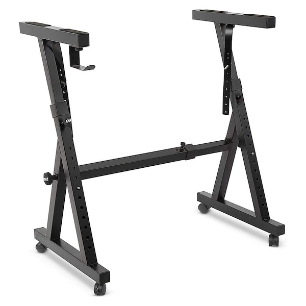 Features: - Safe & Reliable Keyboard Placement - Rugged & Durable Metal Construction - Quick & Convenient Height Adjustment - Secure Stability-Lock Mechanism for Reliability - Unique Z-Design for Maximum Stability - Anti-Slip Rubber Grip Foot Caps - Works with Digital/Electronic Piano Keyboards - Perfect for Seated or Standing Performances - Folding Design for Travel and Storage - Glossy Black Finish - Locking Wheels - Knob Bolts for quick & Convenient Height Adjustment - Easily to Set Up or Adjust Height & Width of the Stand - Includes Wheels for Transport & Home Use What's in the Box: - Digital Piano Stand Technical Specs: - Adjustable Height with Wheels Attached: 22'' x 35.4'' -inches - Adjustable Width with Wheels Attached: 22.8'' x 39.8'' -inches - Construction Material: Steel - Minimum Height: 22'' -inches - Maximum Height: 35.4'' –inches - Maximum Weight Load Capacity: 85 lbs. - Folded / Closed Dimensions (L x W x H): 21’’ x 2.6’’ x 20.7’’ -inches - Open / Extended Dimensions (L x W x H): 19.68’’ x 22.83’’ – 39.76’’ x 22’’ – 35.4’’ - inches