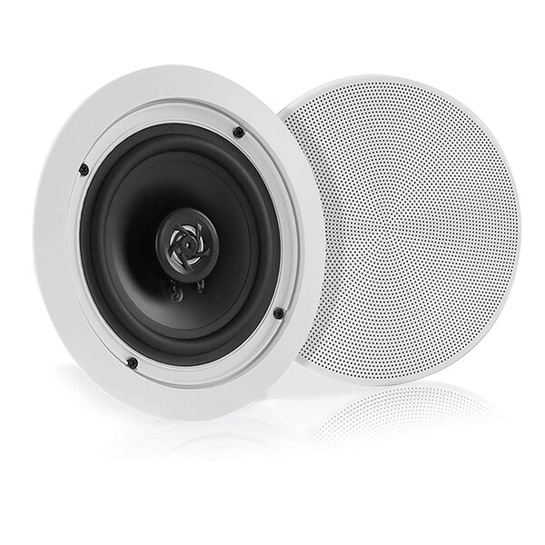 Features: - Includes (2) 5.25’’ -inch Speakers - In-Wall / In-Ceiling System - Built-in Bluetooth for Wireless Music Streaming - Quick Connect Spring-Loaded Speaker Terminals - 1/2’’ High Compliance Polymer Tweeter - Polypropylene Cone with Rubber Edge - Mounts Flush to Walls or Ceilings - Cut-Out Size Template for Easy Installation - Environmentally Friendly ABS Construction - Perfect for Custom Installations & Applications Bluetooth Connectivity: - Includes Bluetooth Wireless Audio Control Receiver - Works with All of Today’s Latest Devices - (Smartphone, Tablet, Laptop, Computer, etc.) - Bluetooth Network Name: ‘Pyle’ - Bluetooth Network Password: ‘0000’ (4 Zeroes) - Bluetooth Version: 4.0 - Wireless Range: 30’+ ft. What’s in the Box: - (2) 5.25’’ Speakers - Speaker Connection Wire - Bluetooth Control Receiver - Power Supply Technical Specs: - MAX Power Output: 150 Watt - Impedance: 8 Ohm - Sensitivity: 88 dB - Frequency Response: 80Hz-20kHz - Power: 100/240V (12V DC Power Supply) - Total Unit Dimensions (Diameter x Depth): 8.0’’ x 3.0’’ - Cutout Diameter: 6.5’’, Cutout Mounting Depth: 2.6’’ - Single Speaker Weight: 2.33 lbs.