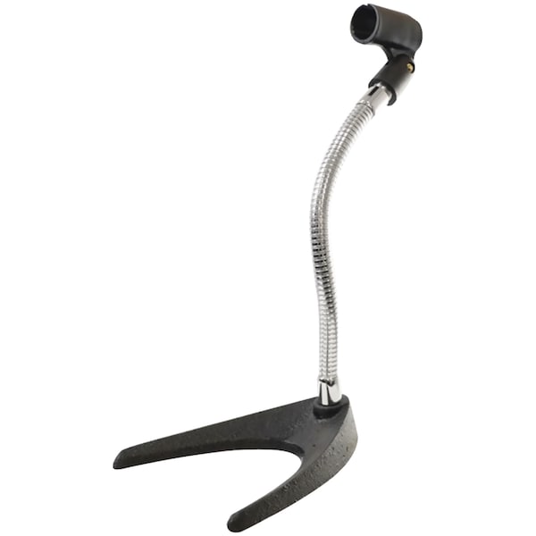 The Pyle Pro PMKS8 U-Base Gooseneck Desktop Microphone Stand features adjustable positioning and die cast iron U-shape stand. The microphone clip is the standard M6 and the universal screw-on threading is the standard 5/8 in. The base is made from steel alloy while the adjustable gooseneck is 8.2 in. long. Use this microphone on desks or tabletops, in studio or on stage!