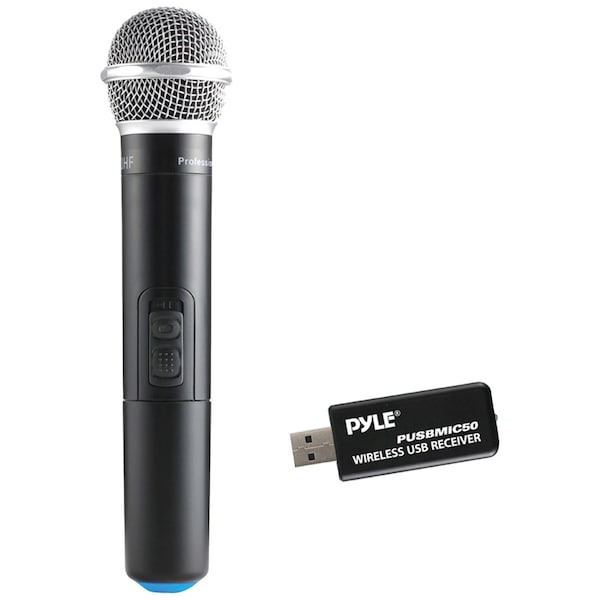 The Wireless Microphone and USB Receiver from Pyle is a handheld dynamic UHF microphone system. Just connect the USB receiver into your device, then connect the audio cable. It works with Mac and PC.