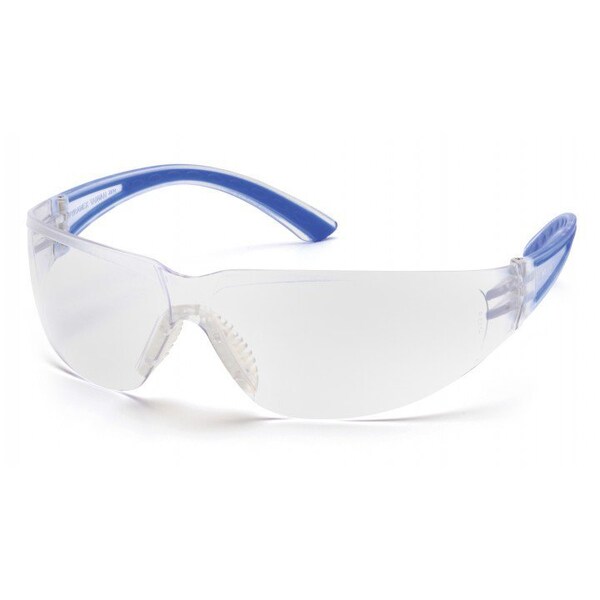 Pyramex Safety - Cortez - Navy Temples/Clear Lens - Ribbed, cushioned nosepiece fits a wide range of bridge sizes and protects against slippage. Durable dual injected polycarbonate and rubber temples. Single lens design provides maximum protection. Lenses are coated for superior scratch resistance. Lenses provide 99% protection against harmful UV rays.