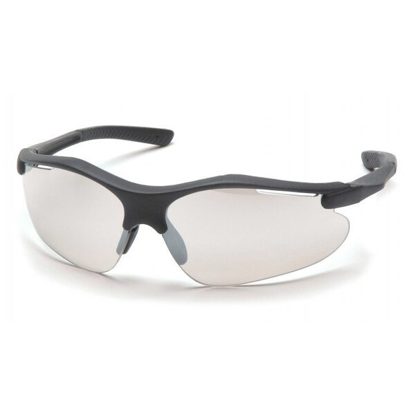 Pyramex Safety - Fortress - Black Frame/Indoor/Outdoor Mirror Lens - Lightweight sports styling contour to the face to provide maximum protection. Vented lens allows air to flow away from the lens to prevent fogging. Adjustable nose pad provides a comfortable fit for a broad range of bridge sizes. Anti-Scratch lenses offer 99% protection against harmful UV rays.
