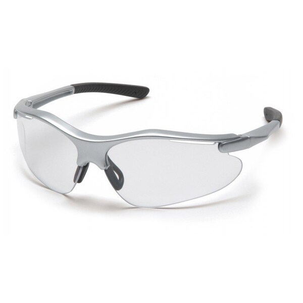 Pyramex Safety - Fortress - Silver Frame/Clear Lens - Lightweight sports styling contour to the face to provide maximum protection. Vented lens allows air to flow away from the lens to prevent fogging. Adjustable nose pad provides a comfortable fit for a broad range of bridge sizes. Anti-Scratch lenses offer 99% protection against harmful UV rays.