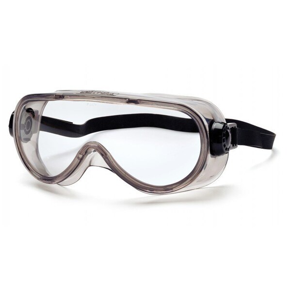 Pyramex Safety - Goggles - Chem Splash-Clear Anti-Fog with Neoprene Strap - Top shelf chemical splash goggle features generously sized heavy duty body and lens. Special one-way vent allows air to enter while keeping liquids out. Body tinted to reduce glare. Lenses provide 99.9% protection against harmful UV rays.