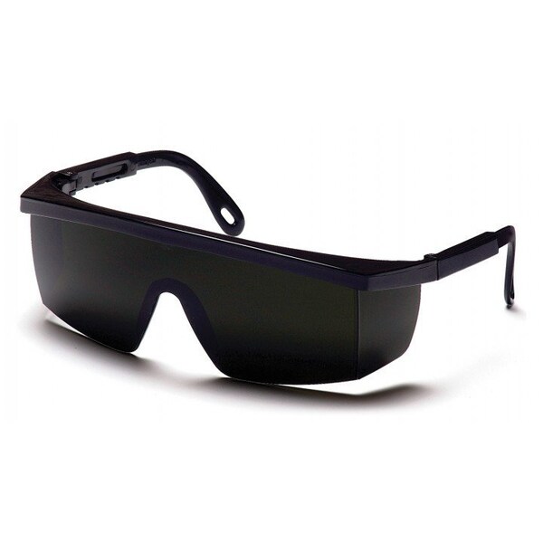 Pyramex Safety - Integra - Black Frame/5.0 IR Filter Lens - Single lens and adjustable temples ensure reliable performance. Available in a wide variety of frame colors and lens tints. Select frames available with fog free coating. Lenses are coated for superior scratch resistance. Lenses provide 99% protection against harmful UV rays.