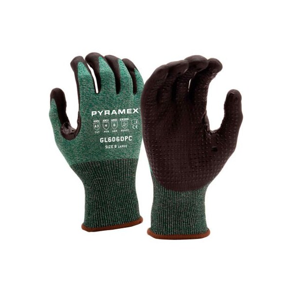 Specifications ansi/isea 105-2016 cut: 3 abrasion: 4 puncture: 6 en388: 2016 - 4x42c abrasion: 4 circular blade cut: x tear: 4 puncture: 2 cut tdm-100: c impact rated: x features: type: dipped glove material: nitrile micro-foam dots: nitrile smooth liner: 18 gauge hppe cuff: hppe + latex elastic dotted palm reinforced thumb tear and abrasion resistant foam nitrile absorbs oil to increase grip additional foam coating acts like a sponge to help increase gripping power offers tactile sensitivity and dexterity