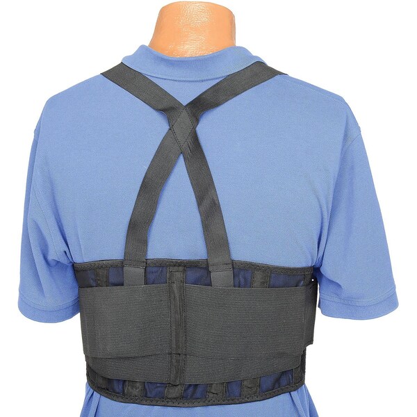 Constructed from lightweight durable material. Stabilizes the spine, supports the abdomen and lower back to prompt proper lifting techniques. Contoured shape allows flexibility and complete freedom of movement. Features breakaway suspenders. Plastic support stays. 2 overlap style adjustable panels. Washable and shrink resistant.