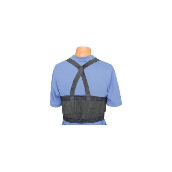 STANDARD BACK SUPPORT BELT, ADJUSTABLE SUSPENDERS, MEDIUM, 32-38" WAIST SIZE STABILIZES THE SPINE, SUPPORTS THE ABDOMEN AND LOWER BACK TO PROMPT PROPER LIFTING TECHNIQUES. CONSTRUCTED FROM LIGHTWEIGHT DURABLE MATERIAL. CONTOURED SHAPE ALLOWS FLEXIBILITY AND COMPLETE FREEDOM OF MOVEMENT. FEATURES BREAKAWAY SUSPENDERS. PLASTIC SUPPORT STAYS. 2 OVERLAP STYLE ADJUSTABLE PANELS. WASHABLE AND SHRINK RESISTANT. CONVENIENTLY PACKAGED.
