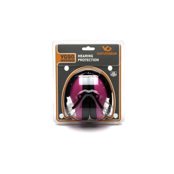 Venture Gear - Earmuff - PINK 9010 EARMUFF IN CLAMSHELL - Low profile design Soft foam ear cups Fold-away padded headband