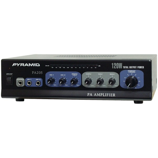 The Pyramid 120 Watt Amp with Microphone Input gives your customers the power and versatility they need in a professional sound system. The amplifier's wide frequency response makes it suitable for amplifying music or vocal program material. It can be used for live bands, office paging systems, public announcements or a variety of other installations.