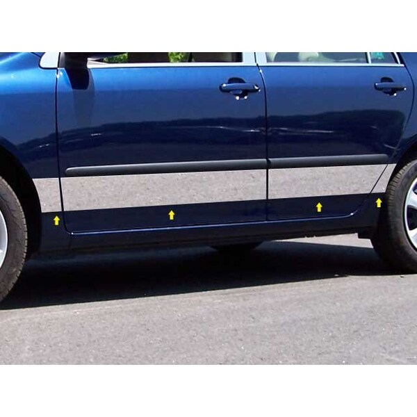 QAA fits Toyota Corolla 2003-2008 8 piece Stainless Steel Rocker Panel Trim, Upper Kit, 4.875 Width TH24112