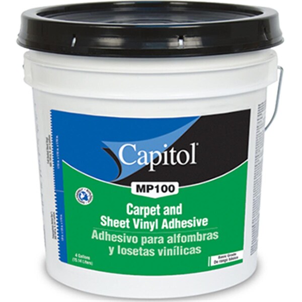 Basic Carpet and Sheet Vinyl Adhesive. Capitol MP100 is a water-based multipurpose adhesive for the installation of felt-back sheet vinyl and most carpet in residential or light commercial installations. Its wet grab is great for carpets but allows alignment of sheet vinyl floors without tearing the back. Economical. Low odor. Extended working time. CRI Certified. Gallon.