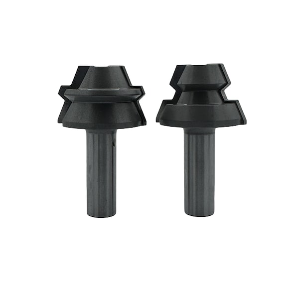 Lock Mitre Bits are used for interlocking edge to edge joints. These joints are most commonly found in the corners of casework. This tool is sold as a set and can be used to create step light shelving or octagonal joints. Best used in a shaper with a fence.