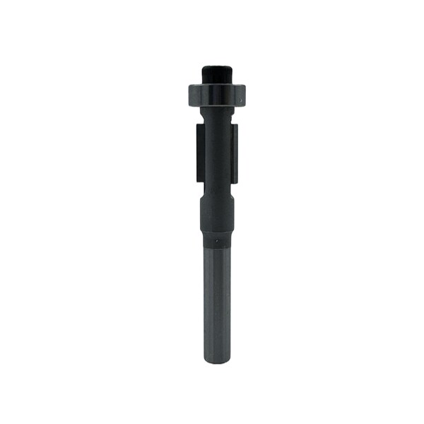 The Overhang Flush Trim router bit has a bearing at the bottom of the tool allowing for removal of laminate and other adhered material from the overlap of the base material. The oversized bearing allows for a consistent overhang of laminate from the template or base material.