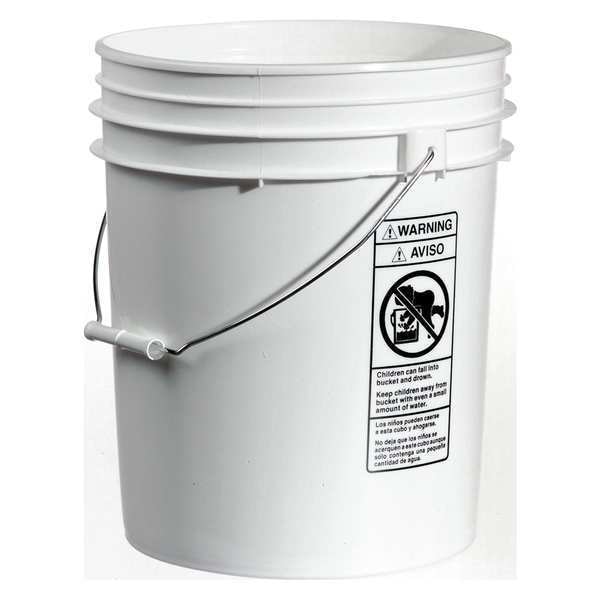 Storage Pail, Bucket/Pail Material Plastic, Color White, Handle Material Metal, Head/Closure Type Open Head, Includes Lid Lid Not Included, Maximum Operating Temperature 150 Degrees F, Overall Diameter 12 3/8 in, Overall Height 17 3/8 in, Overall Width Not Applicable, Shape Round, Standards HACCP, ISO Certification, UN Rated, Volume Capacity 6 gal, FDA Approved FDA Compliant, NSF Standards Not Rated, UN Standards 1H2/Y27/S; 1H2/Y43/S, Overall Length Not Applicable, Finish Unfinished
