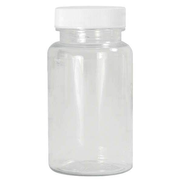 Precleaned Packer Bottle, Body Color Clear, Body Material Polyethylene Terephthalate (PET), Body Diameter - Metric 59 mm, Capacity - Metric 200 mL, Capacity - English 6.75 fl oz, Overall Height - Metric 109 mm, Clarity Transparent, Closure Included Yes, Closure Liner Material F217, Screw Closure Size 38-400 mm, Closure Color White, Mouth Size Wide, Autoclavable No, Sterile/Non-Sterile Non-Sterile, Pre-Cleaned Visible Particulate, Closure Material Polypropylene, Shape Round
