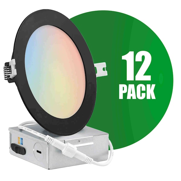 6-Inch Slim-Panel Recessed Light Black, 5CCT, Wet Location, 12PK