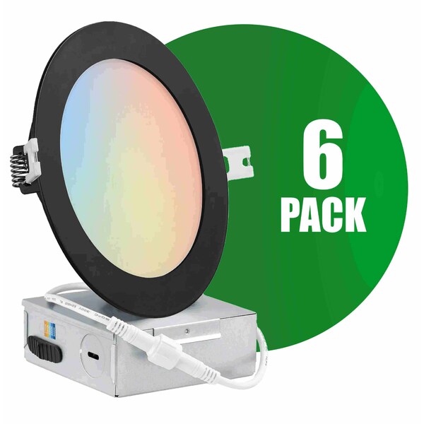 6-Inch Slim-Panel Recessed Light Black, 5CCT, Wet Location, 6PK