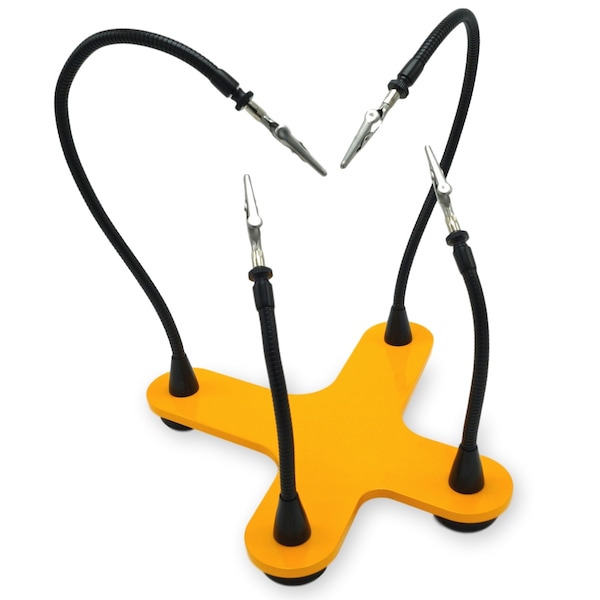 FOUR FLEXIBLE ARMS - Third hand? How about a fourth, fifth and sixth hand? That's what you get with QuadHands4 adjustable metal gooseneck arms and stainless steel precision alligator tip clamps, with removable silicone coverings. They're strong enough to keep a tight vise-like grip and will stop your work surface from moving. You can easily walk away from your project and return to it exactly how you left it. No more juggling loads of items all at once. EXTREMELY STURDY - Our powder coated steel base with industrial strength rubber feet will ensure your workstation doesn't move, slip or slide around. Plus, the rubber feet will protect your work surface from scratches and scuffs. Our 8 inch by 8 inch work base is heavy and won't tip over even with cumbersome and heavy projects. The flexible arms won't wear out and won't breakdown because they're made of professional grade materials. PERFECT FOR TONS OF PROJECTS - You don't just need to use QuadHands for your electronics and soldering jobs, although they're perfect for that type of work! Many customers use them for hobby projects, arts and crafts, and fine detail work like painting miniatures and figurines. Any project that requires detail work or the use of more than one hand will benefit greatly from QuadHands helping hands!