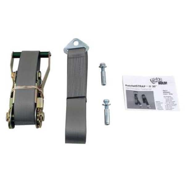 Ratchet Strap, Gray, Weight Capacity 4,000 lb, Used For Secure To Concrete Floor And Over -80, -20 Freezers, Multi-Door Deli Refrigerators, Incubators, Shakers, And Other Large Equipment., Includes (2) 3/8 in Anchor Bolts, (2) 3/8 in Drop Anchors, (2) 3/8 in Washers, 2 in x 180 in Strap with Floor-Mount Plate, 2 in x 30 in Strap with Wide-Handle Ratchet, Floor-Mount Plate