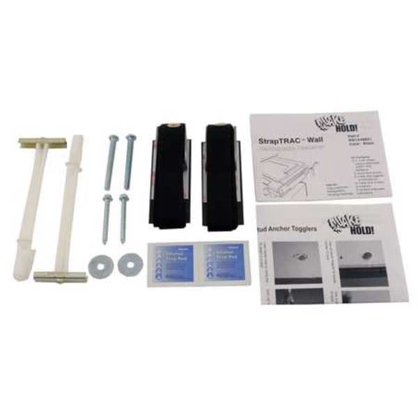 (2) 1 in x 48 in Straps using a Steel Plate with 3M(R) VHB Adhesive and Steel Buckle, (2) 1/4 in Metal Stud Screws, (2) 1/4 in Metal Stud Togglers, (2) 1/4 in Wood Stud Screws, (2) 1/4 in x 1 in Washers, (2) Surface Prep Pads