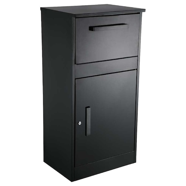Do you need more room? The Winfield ParcelDefender is a freestanding locking parcel mailbox which can hold several small packages and mail. Built from thick heavy gauge galvanized steel, parcel box has a tough black powder coated finish and locking retrieval door has a handle for easy open and shut. Incoming parcel door also has a handle for easy open and shut and can receive a maximum parcel size of: 16" x 11-3/4" x 8-1/4". Parcel opening: 16-1/2" x 13" x 7-1/2". Parcel box includes lock and a set of keys. . ParcelDefender locking parcel & mailbox, Black color