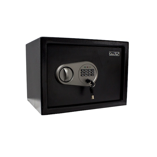 A digital combination with 3-8 digit code has a time out period after 3 incorrect combination attempts, a back-up key is also included.. Personal Safe (.5 cu ft)