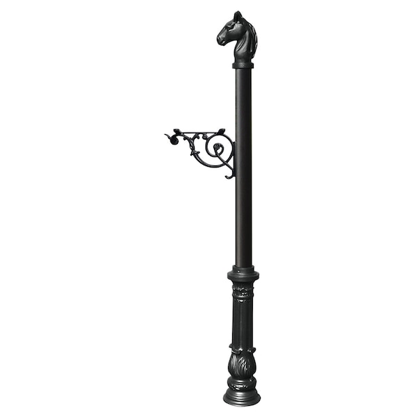 Our Lewiston Equine Post is made from rust-free cast aluminum with a durable weather resistant finish and comes with support brace, decorative horsehead finial and ornate base in black color. (Post, brace, finial and base only, no mailbox) . Lewiston Equine Post only, with support bracket, decorative ornate base and horsehead finial