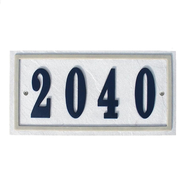 Made with real crushed stone the Ridgestone plaques feature a rich stone textured background with polished stone border. Uv and weather resistant, with color all throughout material. Plaques include large 4" raised polymer numbers 0-9 twice in the box along with a tube of adhesive glue, number template and mounting hardware. . Ridgestone Rectangle Crushed Stone "Do it yourself kit" Address Plaque in Slate Color