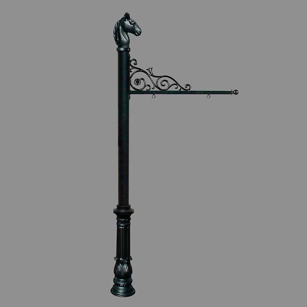 Sign System w/Horse Head Finial & Ornate Base, Black color