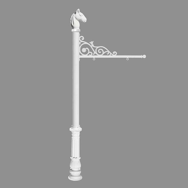 Sign System w/Horse Head Finial & Ornate Base, White color