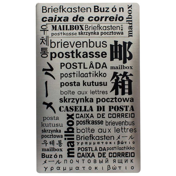 Winfield Verse wall mount locking mailbox features "Mailbox" written in different languages in screen printed graphics from all around the world. Body is made of black powder coated galvanized steel with stainless steel letter plate and locking door. Incoming mail slot is made of stainless steel, slot opening is: 9-3/8" x 1-1/2". Mailbox includes lock and set of keys. . Verse locking mailbox, stainless steel front