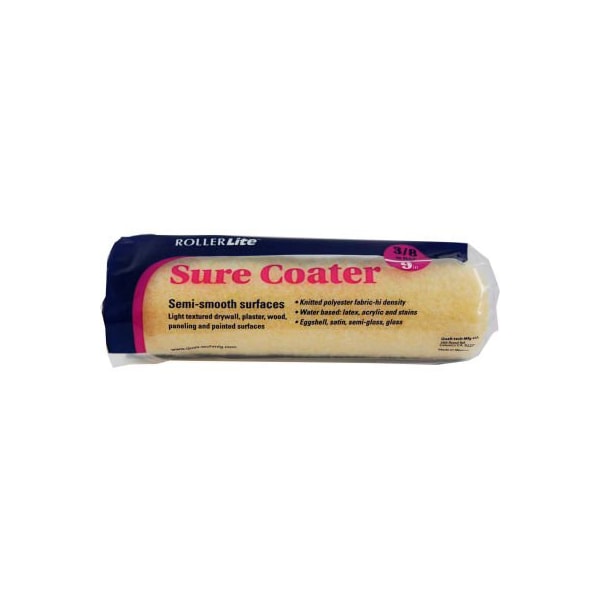 Rollerlite 9 x 3/8 high-density polyester fabric roller cover, 24/case - 9sc038 9 knitted polyester fabric-hi density roller cover with a 3/8 nap. Designed for semi-smooth surfaces and water-based latex, acrylic, and stains. Best for use with eggshell, satin, semi-gloss, and gloss paint sheens.