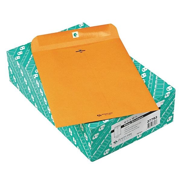 Catalog Envelopes, Material Kraft, Envelope Closure Clasp with Gummed Flap, Color Brown, Envelope Size #12-1/2, Height 9 1/2 in, Width 12 1/2 in, Opening Top, Package Quantity 100
