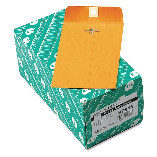 Catalog Envelopes, Material Kraft, Envelope Closure Clasp with Gummed Flap, Color Brown, Envelope Size #15, Height 4 in, Width 6 3/8 in, Opening Top, Package Quantity 100