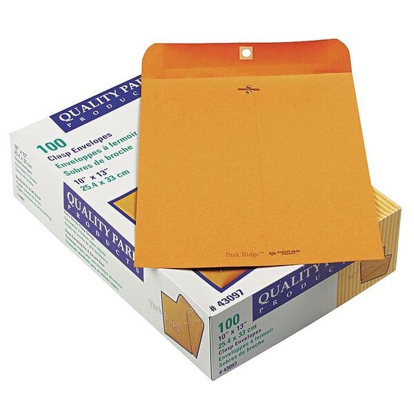 Catalog Envelopes, Material Kraft, Envelope Closure Clasp with Gummed Flap, Color Brown, Envelope Size #97, Height 10 in, Width 13 in, Opening Top, Package Quantity 100