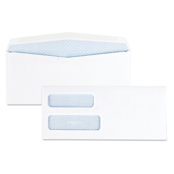Window Envelopes, Envelope Closure Gummed Flap, Paper Stock, White, Envelope Size #10, Height 4 1/8 in, Width 9 1/2 in, Security Tint Yes, Number of Windows 2, Window Position Bottom Left/Top Left, Window Height 7/8 in, Window Width 3 1/2 in, Top Window Height 7/8 in, Top Window Width 3 1/2 in, Bottom Window Height 1 in, Bottom Window Width 4 in, Package Quantity 500