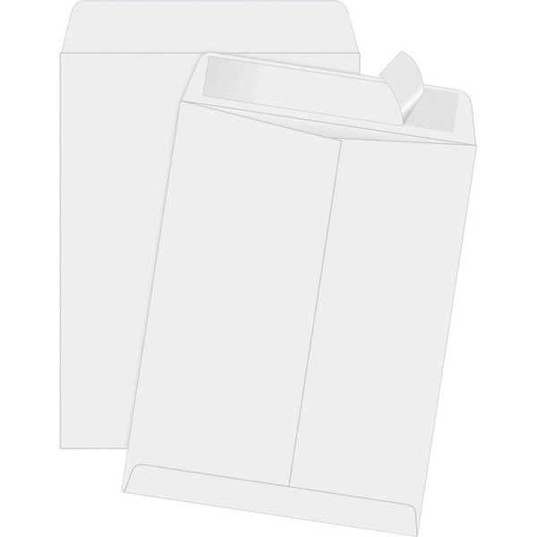 Catalog envelopes feature a removable strip that provides a clean, quick seal immediately upon contact. This convenient Redi-Strip closure requires no moisture to seal. Simply peel away the liner and seal. Paper strip keeps adhesive free of dust, assuring a long shelf life. Envelopes are made of a sturdy, 28 lb., white wove material.