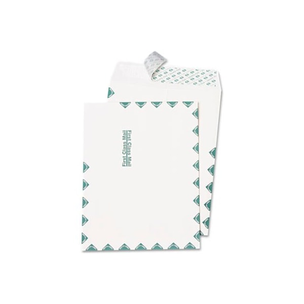 Quality Park Redi-Strip Catalog Envelopes, "First Class" Print, 10"W x 13"H, White, 100/Pack