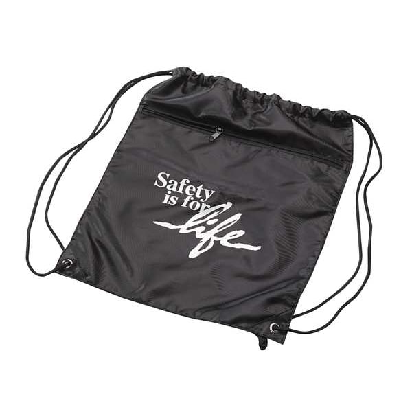 Backpack with Drawstring, Message Safety is for Life, Color Black, Size 17-1/2 In. H x 15 In. W