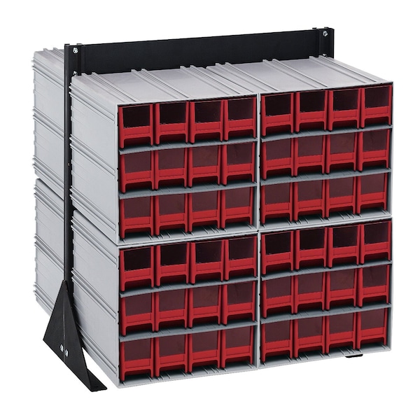 Interlocking Storage Cabinets Floor Stand, double sided, 24''D x 23-5/8''W x 28''H, 750 lbs. load capacity, includes: 8 QIC-122, 96 red drawers, 14 gauge steel, black coated finish