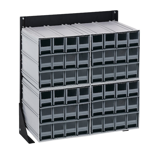 Interlocking Storage Cabinets Floor Stand, single sided, 12''D x 23-5/8''W x 28''H, 300 lbs. load capacity, includes: 4 QIC-122, 48 gray drawers, 14 gauge steel, black coated finish