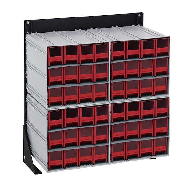 Interlocking Storage Cabinets Floor Stand, single sided, 12''D x 23-5/8''W x 28''H, 300 lbs. load capacity, includes: 4 QIC-122, 48 red drawers, 14 gauge steel, black coated finish