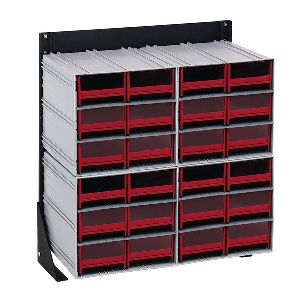 Interlocking Storage Cabinets Floor Stand, single sided, 12''D x 23-5/8''W x 28''H, 300 lbs. load capacity, includes: 4 QIC-64, 24 red drawers, 14 gauge steel, black coated finish