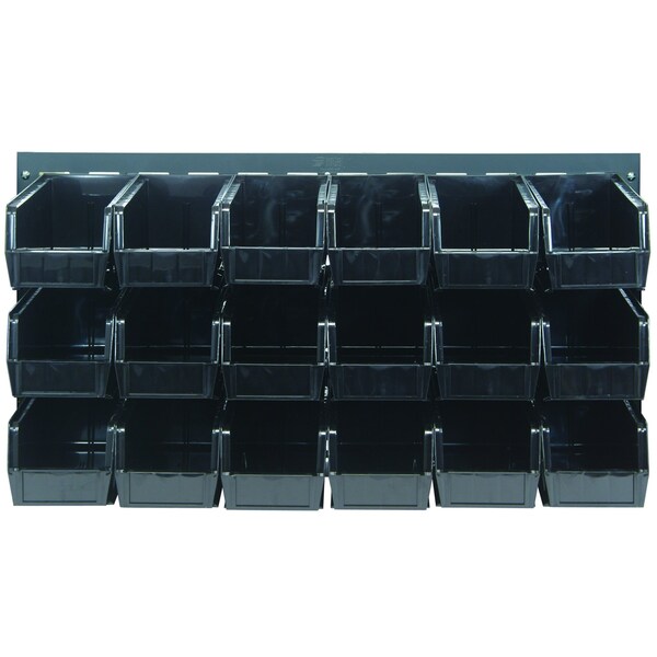 Louvered Panel, wall mounted, 36''L x 11''D x 19''H, includes: 18 QUS230, black bins, heavy-duty 16 gauge cold rolled steel, gray enamel coated finish mounting hardware not included